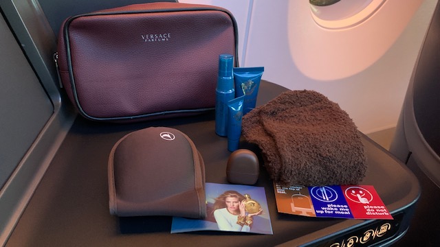 The crew also offered the business class amenity kit consisting of a pouch bag from Versace which contained an eye mask, ear plugs, socks and Versace facial mist, lotion and lip balm π